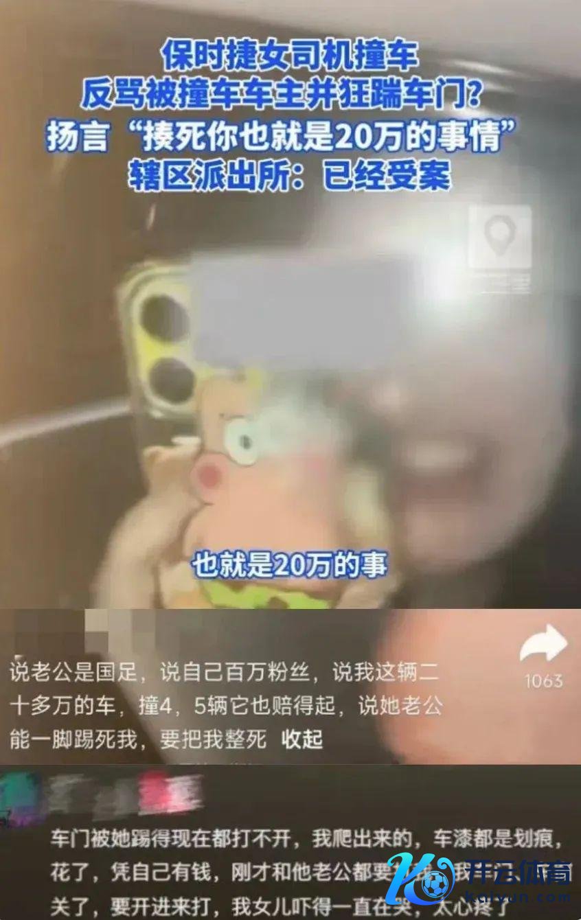 还称我方是百万粉丝的网红,老公是国足的,一脚就能把你踢死,并叫嚣:“撞死你,也就20万的事。”