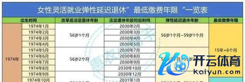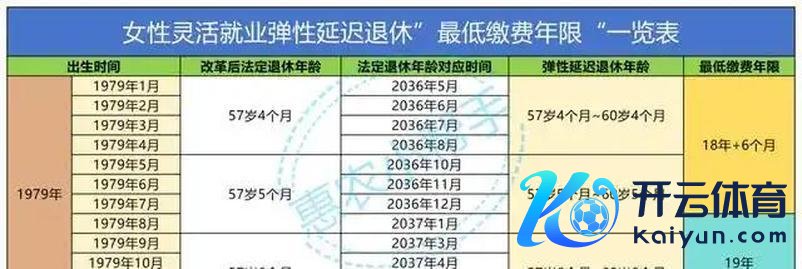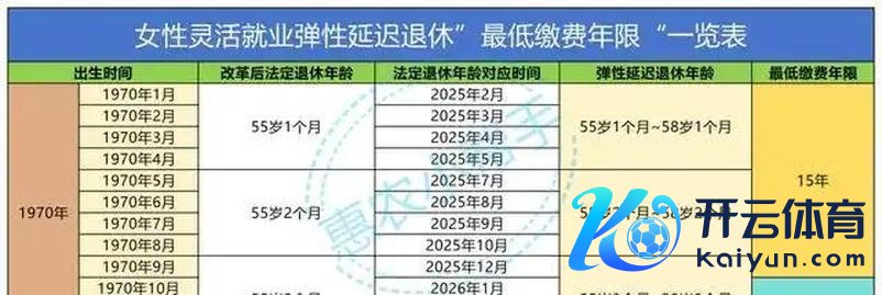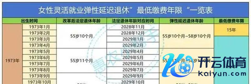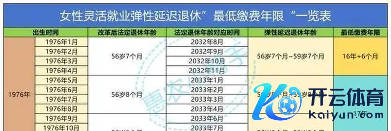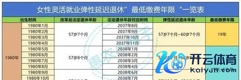 尽头是,在生动工作的妇女中,弃取了“弹性推迟退休”,相应的年度最低缴费时间表如下: