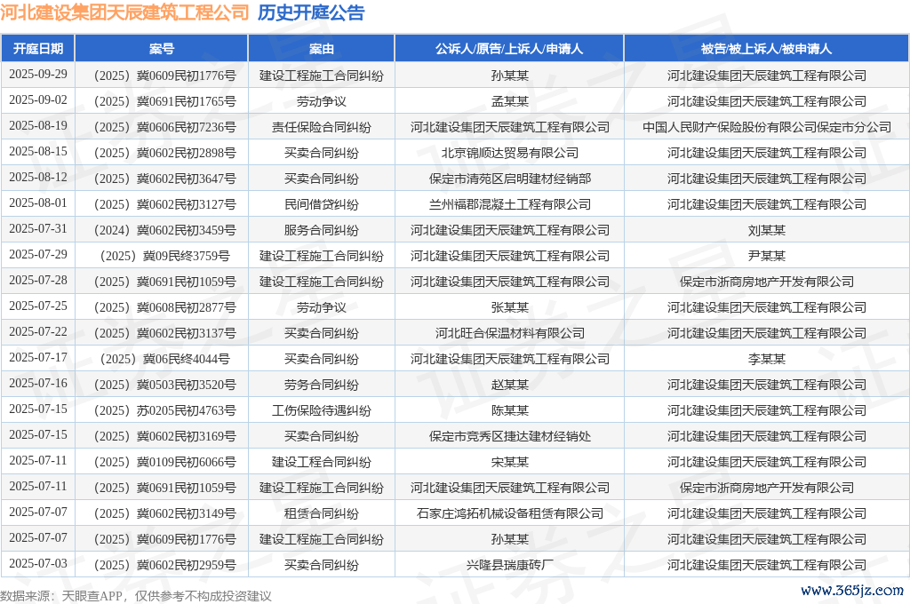 本站音讯,笔据天眼查APP败露,近日公布了一则河北建造集团天辰建筑工程有限公司手脚被告/被上诉东谈主的开庭公告,详备实践如下: