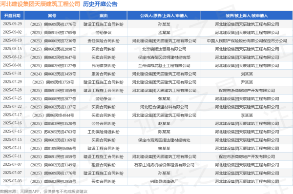 本站音讯,笔据天眼查APP败露,近日公布了一则河北建造集团天辰建筑工程有限公司手脚被告/被上诉东谈主的开庭公告,详备实践如下: 案号:(2025)冀0602民初3647号审理法院:保定市竞秀区东谈主民法院案由:商业左券纠纷当事东谈主信息:原告/上诉东谈主:保定市清苑区启明建材经销部被告/被上诉东谈主:河北建造集团天辰建筑工程有限公司开庭日历:2025年8月12日 笔据统计,近一年内以河北建造集团天辰建筑工程有限公司为当事东谈主的历史开庭公告有140则,其中案由为“商业左券纠纷......【更多...】